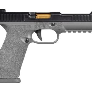 – SAI Sight Set (red fiber optic front, blacked out rear) – Knurling pattern on top of slide for increased traction – Massive window cut for slide lightening and recoil reduction – SAI slide panel cuts – Front and rear cocking serrations – Match-grade, box fluted, SAI TiN coated barrel (and TiN coated barrel lug) – AF-Speedlock locking mechanism
